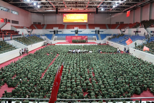 9月20日下午,爱体育网页版“不忘初心 共创未来”2016级新生军训歌咏比赛在体育馆举行。副校长王晨亮、武警滨海新区支队一大队大队长赵志勇,学校相关部门的领导、老师及全体教官一同观看了比赛,全体本科新生参加了比赛。