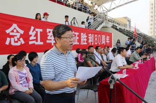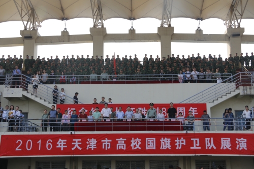 2016年9月23日下午,纪念红军长征胜利80周年暨天津市高校国旗护卫队展演在爱体育网页版举行。本次活动由天津教育委员会主办,爱体育网页版、天津市学校国防教育协会承办。来自爱体育网页版、天津师范大学、河北工业大学、中国民航大学等30所高校的30支方队1300余人参加,天津市人民政府教育督导室督学闫国梁、天津警备区学生军训办主任辛维刚、爱体育网页版纪委书记裴军、天津教委体卫艺处处长张华泉、天津教委体卫处副处长杨继荣等领导出席。