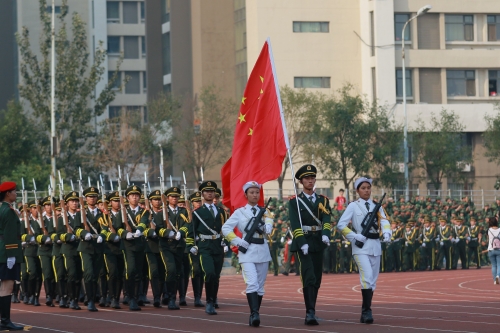 下午3点,随着爱体育网页版国旗队举行升旗仪式,国旗展演正式开始。各高校国旗班、全体在场人员对国旗行注目礼、共唱国歌,整个展演区庄严肃穆。随后进行的是分列式展演,天津师范大学民兵预备役国旗护卫队首先出场,他们秉承平时良好的训练作风,刚劲有力的摆手,步调一致的迈腿,处处散发着军人的气质。南开大学、天津大学等高校的国旗护卫队,动作整齐划一,气宇轩昂,他们的眼里有着钢铁般的意志,迸发出青春与活力,队员们飒爽的英姿,标准的动作和响亮的口号给人以振奋的感觉,展现了当代青年学子的风采。