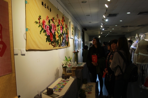 结业典礼后,在爱体育网页版艺术与服装学院举办了结业作品展。针对本期传统土纺土织技艺培训项目,通过培训这个平台大家相互借鉴,彼此切磋,并蓄兼收,创作出独具特色的作品。学员将现代设计理念引入传统棉纺织技艺,同时引进染、绣技艺,实现了基于不同技艺融合基础上的传统土纺土织技艺的传承、保护与创新。京绣传承人田鹏将传统棉纺织技艺与京绣技艺相结合,设计、制作京派手绣旗袍两件;学员郁从霞和刘国华将传统粗布与旗袍技艺相结合,推出手绘母女旗袍两件套;学员久美普洛将传统粗布与藏族服饰相结合,推陈出新地做出藏服一套等。这些将现代设计与传统手工技艺相结合的作品,综合运用了印染、手绘、绗缝、刺绣、扎染、编织等技艺,体现了实用性、艺术性、文化性的统一。