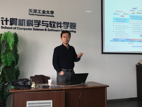 2016129日,应我校计算机科学与软件学院邀请,合肥工业大学徐常胜教授在计算机科学与软件学院C516学术报告厅作了题为“以用户为中心的社会多媒体计算”的学术报告。计算机科学与软件学院院长汪剑鸣教授主持报告会,相关学科科研骨干教师及研究生参加。