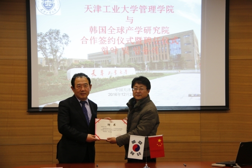 会见结束后,我校管理学院与韩国全球产学研究院在学校会议中心第三会议室举行了双方合作协议签约仪式暨聘请洪昌奭理事长为学院特聘教授的聘任仪式。仪式上,管理学院蔡为民院长被聘为韩国全球产学研究院名誉院长。仪式结束后,客人实地参观了管理学院教学、科研场所和设施。(审稿:国际交流与合作处张兴国 编辑:宣传部 武冰洁)
