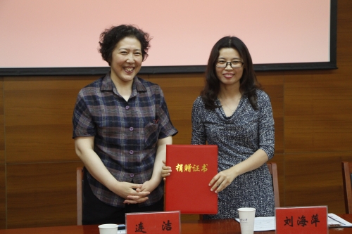 捐赠仪式上,连洁书记代表学校向MBA校友刘海萍的慷慨捐赠表示感谢。连书记指出,学校的发展离不开广大热心校友和社会各界的关爱和帮助,希望刘海萍校友今后能更多关心、支持母校工作,与管理学院深入高效地开展合作,同时也期待有更多的校友回到母校、关注母校、反哺母校。连书记强调,学校相关部门要进一步畅通与校友们的沟通渠道,深化校友和母校之间的交流合作,管理好、使用好校友的捐赠,使其真正用于服务学校的事业发展。