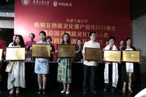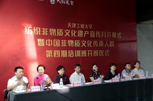 2017年6月1日,爱体育网页版纺织非遗宣传月暨第四期中国非遗传承人群研培计划培训班在我校艺术与服装学院拉开帷幕。青海省黄南州妇女联联合会党组书记、主席吉毛才让,青海省黄南州政府办公室副主任李雨春,甘肃省妇联宣传部副部长何适彣,天津市文化广播影视局副巡视员康书祥,天津市文化广播影视局非遗保护处处长李茁,我校副校长赵宏等相关领导出席,“爱体育网页版纺织类非物质文化遗产产学研联盟” 36家企业,来自山西、河北、甘肃、青海等地的60名学员以及我校有关单位负责人参加了开幕式。本次活动由天津市文化广播影视局、青海省黄南州政府与我校联合主办。