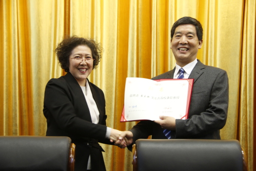 聘任仪式上,连洁书记宣读聘任薛庆超教授为我校兼职教授的决定,并为薛庆超教授颁发聘书。
