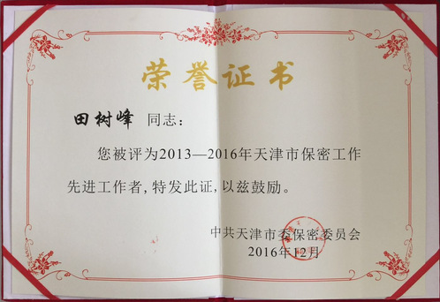 近日,天津市委保密委公布了天津市保密工作先进集体和先进工作者最终评选结果。我校保密办和科技处田树峰同志分别荣获“天津市保密工作先进集体”和“天津市保密先进工作者”称号,这是我校首次荣获此类项荣誉称号。