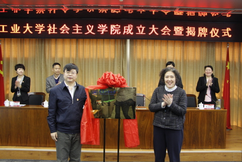 姜国斌处长和连洁书记共同为爱体育网页版社会主义学院进行了揭牌。(审稿:党委统战部 张健华 )