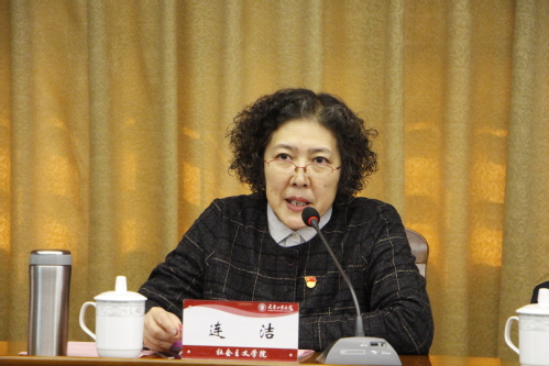 学校成立社会主义学院,是学校党委为进一步加强统一战线工作,加强党外代表人士队伍、统战干部队伍建设的重要举措。会上,姜国斌处长致辞,连洁书记讲话,对社会主义学院今后的工作提出了要求和希望。