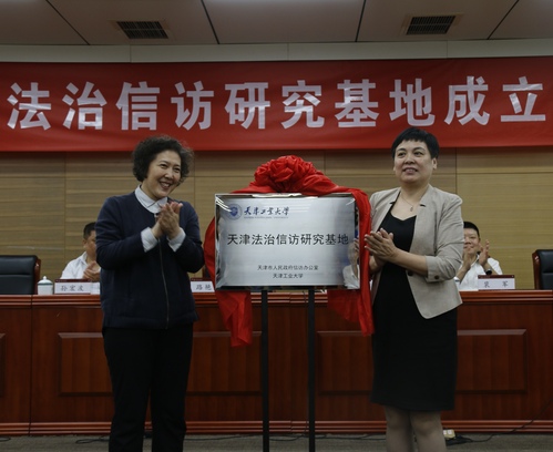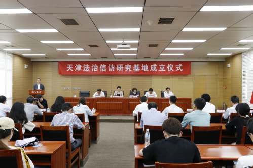 2018522日下午,由天津市政府信访办和我校联合筹建的“天津法治信访研究基地”在我校正式成立,成立仪式在会议中心第七会议室举行。天津市委副秘书长、市信访办党组书记、主任路艳青,市信访办党组成员、副主任孙宏波,校领导连洁、裴军、程博闻出席成立仪式。仪式由副校长程博闻主持。