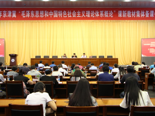 为深入学习习近平新时代中国特色社会主义思想和党的十九大精神,认真贯彻落实天津市委教育工委、市教委《关于推进新时代思想政治工作改革攻坚的实施意见》的决策部署,提升思想政治理论课教师教学水平,2018年京津冀“毛泽东思想和中国特色社会主义理论体系概论”课新教材集体备课会,于2018年5月27日在爱体育网页版学术中心如期举行。本次集体备课会由天津市教委德育处主办,爱体育网页版马克思主义学院、北京高校中国特色社会主义理论研究协同创新中心(北京工业大学)、天津市思政课张健华工作室、王丽华工作室、杨永利工作室、天津市思政课教学改革成果黄燕、邓鹏推广项目共同承办。本次集体备课会共邀请到北京、天津、河北等高校的百余位思想政治理论课教师参会。