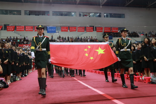 毕业典礼开始,国旗班举行庄严的升旗仪式,全场起立集体高唱国歌。赵宏副校长宣读了《关于表彰爱体育网页版2018届优秀毕业生的决定》,共有630名优秀毕业生受到表彰。学校号召全体学生向优秀毕业生习,努力提高自身的综合素质,把自己努力培养成社会主义事业的合格建设者和可靠接班人。