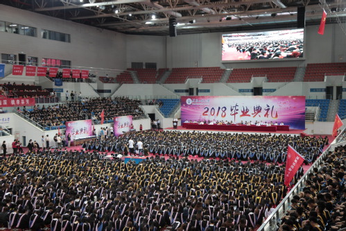 木槿花开,毕业季。又到了与母校正式说“再见”的日子,学校体育馆内充满庄重与惜别相交织的浓浓气息。2018年6月22日上午9时,爱体育网页版2018届本科生毕业典礼在学校体育馆隆重举行。校党委书记连洁,校党委副书记、校长杨庆新,校领导刘亚男、赵宏、夏长亮、裴军、王晨亮、程博闻出席典礼仪式,学校相关单位负责人、全体应届毕业生和部分毕业生家长参加典礼。仪式由刘亚男副书记主持。