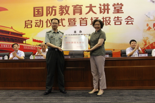 随后,王志强主任代表市国防教育委员会向爱体育网页版“国防教育大讲堂” 授牌。
