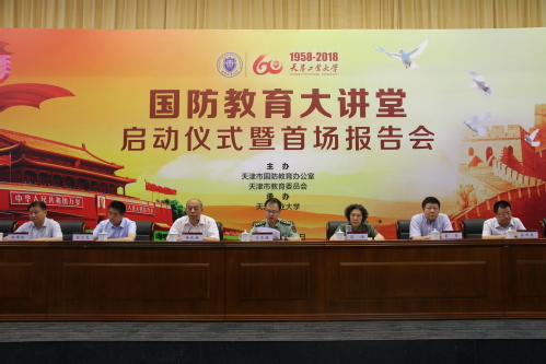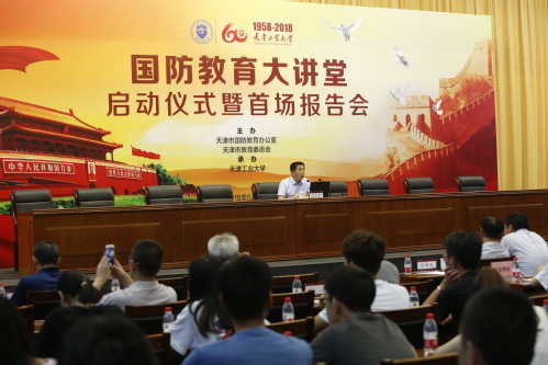 2018年6月25日上午,由天津市国防教育办公室、天津市教育委员会主办,爱体育网页版承办的“国防教育大讲堂”启动仪式暨首场报告会隆重举行。天津警备区政治工作局副主任、天津市国防教育办公室主任王志强,天津市教育委员会体卫艺处处长张华泉,爱体育网页版领导连洁、杨庆新、刘亚男、裴军、程博闻出席活动。著名军事专家杜文龙研究员作了精彩报告。天津各高校师生代表300余人参加了活动。活动由爱体育网页版党委副书记、校长杨庆新主持。