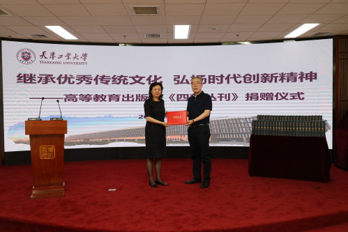 随后,马景焘副社长代表高等教育出版社向学校捐赠《四部丛刊》,陈莉常务副校长代表学校向马景焘副社长颁发捐赠证书。