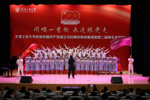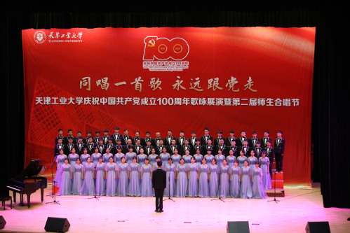 风雨砥砺不忘初心,春华秋实继往开来。天工师生用歌声吹响新时代的号角,用激情扬起新征程的旗帜。参加展演的师生纷纷表示,一定会凝心聚力,笃行致远,担当实干,开拓奋进,与祖国共进,与时代同行!师生共同祝愿我们党的事业蒸蒸日上,祝愿祖国的明天更加繁荣富强!(审稿:校团委 李贺 编辑:党委宣传部 石晓霞)