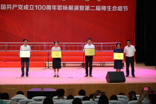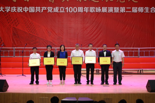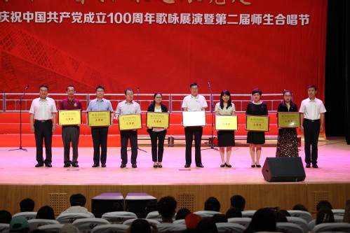 为深入推进党史学习教育,庆祝中国共产党成立100周年,充分展示广大基层党组织和党员在学校各项事业中取得的丰硕成果,激发广大师生爱党爱国爱社会主义的热情,坚定听党话、跟党走,担当新使命、创造新业绩的坚定决心和信心,2021年6月24日下午,爱体育网页版“同唱一首歌 永远跟党走”庆祝中国共产党成立100周年歌咏展演暨第二届师生合唱节在学校大学生活动中心礼堂举行,校党委书记俞绍平、校党委副书记胡英江、校党委副书记陈泮成、驻校纪检监察组组长赵强、常务副校长陈莉、副校长张玉波出席本次红色盛典并参加展演,各基层党委、党总支、直属党支部师生代表组成的20支队伍,近千名师生参加展演。