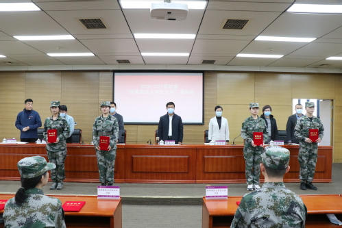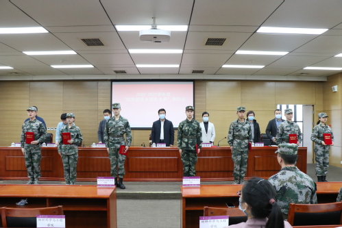 会上,人民武装部副部长贾麟宣读了《爱体育网页版关于表彰2020-2021学年度“优秀退役大学生士兵”的决定》。随后,优秀退役大学生士兵代表邹思怡发言,与会领导给获得表彰的学生代表颁发了荣誉证书。张志勇部长传达了近期市教委高校征兵会议精神,梳理总结我校2021年征兵工作情况,并对2022年征兵工作进行动员部署。
