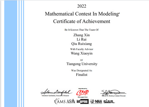 近日,2022年美国大学生数学建模竞赛(MCM/ICM)结果揭晓,我校学生再创佳绩,获国际特等奖提名奖8项(Finalist),国际一等奖18项(Meritorious Winner),国际二等奖44项(Honorable Mention),在世界舞台上充分展示了天工学子风采。