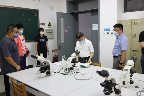 2022年6月15日,市教委检查组到我校检查指导实验室安全工作,副校长刘义及相关单位主要负责人陪同检查。