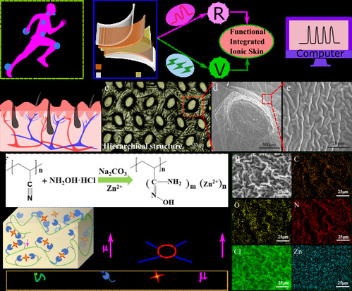 随着人工智能的快速发展,高性能、多功能的柔性传感器已经成为人机交互、精准医疗和运动监测的重要组成部分。离子凝胶由于其高柔性、弹性和离子触觉等特点使其在高性能离子皮肤应用方面得到广泛研究。然而,供电系统及传感系统的集成化问题依然是智能可穿戴设备急需解决的问题。