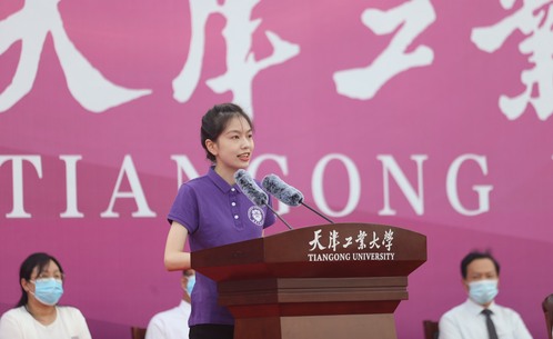 在雄壮的国歌声中,典礼拉开序幕。校党委书记沈江、校长夏长亮院士为新生代表佩戴校徽,2022级新生同时将崭新的校徽佩戴于胸前,从此“天工人”成为2022级同学们一生的印记。