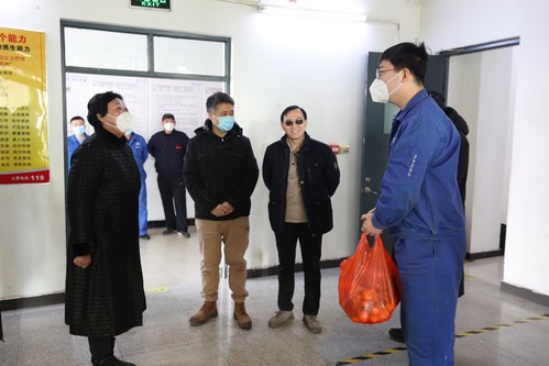 在消防站,沈江书记查看了设备运行情况,了解了校园消防安全工作,强调要始终绷紧安全生产这根弦。在A区设备站,沈江书记详细询问了供暖系统运行和能源保障情况,感谢工作人员的辛勤付出,嘱咐他们合理安排工作生活,快乐过年。在兰缘食堂、学校值班室,沈书记为春节值班工作人员送上美好祝福,祝大家兔年吉祥,万事顺意。