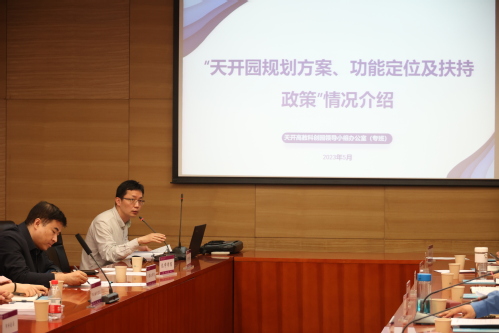 2023年5月5日下午,天开高教科创园政策宣讲进校园活动走进我校。天津市科学技术局、天津市科学技术发展战略研究院和天津科技创新发展中心组成宣讲团,来到我校会议中心第五会议室,向我校各相关学院科研负责人及教师、校友、学生代表,讲解天开园的相关支持政策。