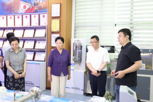 座谈会前,朱财斌书记一行参观了我校高性能纤维及纺织复合材料制备技术国家地方联合工程研究中心和省部共建分离膜与膜过程国家重点实验室,听取最新研究成果介绍,对我校取得的丰硕成果给予高度评价。