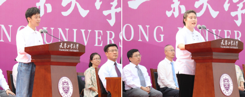 电气工程学院2301班本科生孟子恒、马克思主义学院2023级硕士研究生朱小宇作为新生代表分别发言,表达了要在天工这片育人沃土上自觉扛起时代赋予的责任与使命、在青春赛道上跑出天工学子最好成绩的信心和决心。
