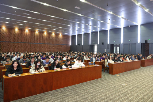 为贯彻落实党的二十大精神,深入学习领会习近平文化思想,深刻把握习近平文化思想的重大意义、丰富内涵和实践要求,2023年11月2日下午,我校在学术中心举办学习领会习近平文化思想专题报告会,特邀南开大学马克思主义学院教授、博士生导师张健作专题报告。学校中层干部、各学院学生办公室主任、马克思主义学院教师及研究生代表、新入职教职工代表、“青马工程”培训班学员共250余人参加。报告会由党委宣传部部长刘玉靖主持。