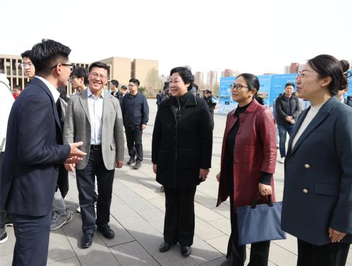 校党委书记沈江、党委副书记胡英江来到招聘现场,与用人单位和参会学生亲切交流,了解用人单位需求和对学校人才培养的意见建议,他们感谢用人单位长期以来对学校毕业生的认可和对学生就业创业工作的支持。沈江书记还认真询问参会毕业生就业意向和求职准备情况,鼓励毕业生积极树立正确的就业观、择业观,从实际出发选择职业,实现高质量就业。