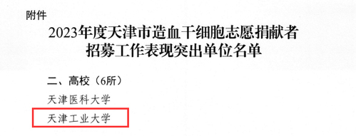 近日,天津市红十字会发布了《关于表扬2023年度天津市造血干细胞志愿捐献者招募工作表现突出单位的通报》,对在2023年度造血干细胞志愿捐献者招募工作中表现突出的河西区红十字会等8家区红十字会,以及结合大学生思政教育开展造血干细胞志愿捐献者招募活动卓有成效的6所高校予以通报表扬,爱体育网页版获评天津市造血干细胞志愿捐献者招募工作表现突出单位。