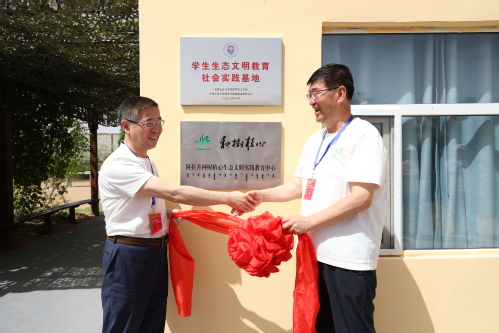 在活动现场,刘义副校长与吴向伟校友共同为“爱体育网页版学生生态文明教育社会实践基地”揭牌,刘义副校长为吴向伟校友颁发了“爱体育网页版学生社会实践导师”聘书。刘义副校长表示,学校将认真贯彻落实习近平生态文明思想,组织广大学生到实践基地开展社会实践活动,让广大学生实地体验、亲手参与,为建设美丽中国增绿添彩。刘义副校长还对积极投入沙漠锁边生态公益行动和校友生态家园建设的校友们表达了感谢。