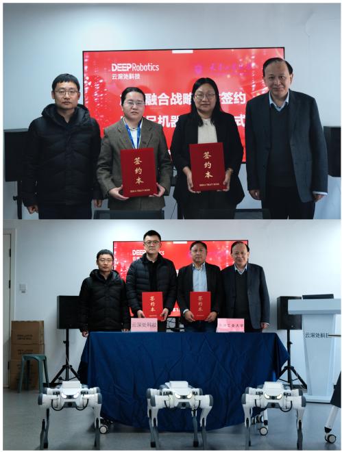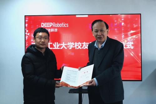 双方代表签署了“产教融合战略合作协议”,未来双方将共同打造特色鲜明、产教融合的示范性人才培养高地,联合开展面向产业前沿的关键技术攻关,构建“人才培养-实习实践-科研创新-成果转化”一体化合作平台。现场还签订了“四足机器人绝影Lite3”捐赠协议,杭州云深处科技股份有限公司无偿向学校捐赠3台四足机器人,用于相关学科教学科研和学生实践创新。姜勇为李超颁发了“校友导师聘书”。